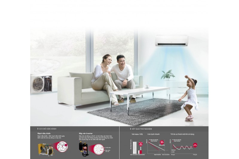 Smart Inverter với khả năng thay đổi tốc độ của máy nén để duy trì nhiệt độ mong muốn giúp tiết kiệm điện năng nhưng vẫn đảm bảo sự thoải mái khi sử dụng.