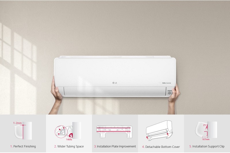 •     Điều hòa không khí LG được thiết kế để dễ dàng và hiệu quả hơn cho quá trình cài đặt, không phụ thuộc vào điều kiện xung quanh và số lượng nhân viên lắp đặt. Bằng việc giảm thời gian và số lượng kỹ thuật viên thao tác, giờ đây tốc độ lắp máy đã dễ dàng & nhanh hơn.